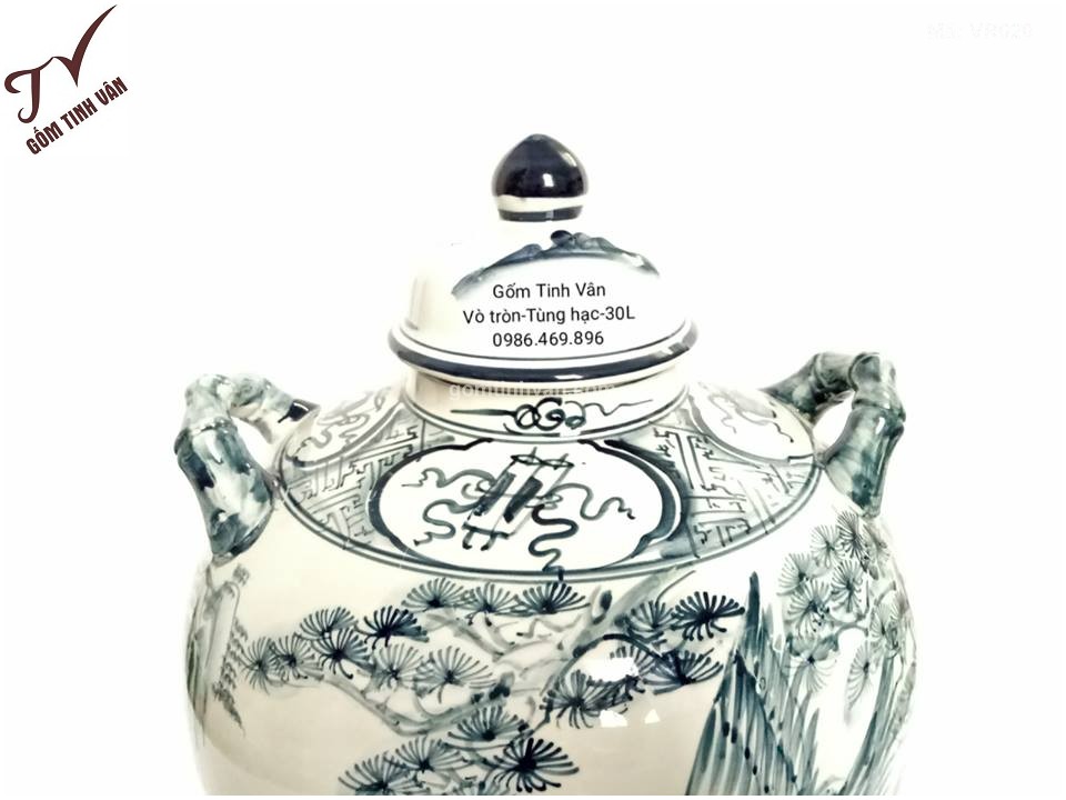 Vò rượu hoa văn vẽ tùng hạc 30 lít - VR020