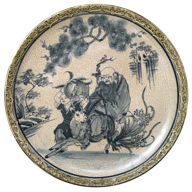 Đĩa cảnh trưng bày men rạn bọc đồng đường kính 35cm - 520006