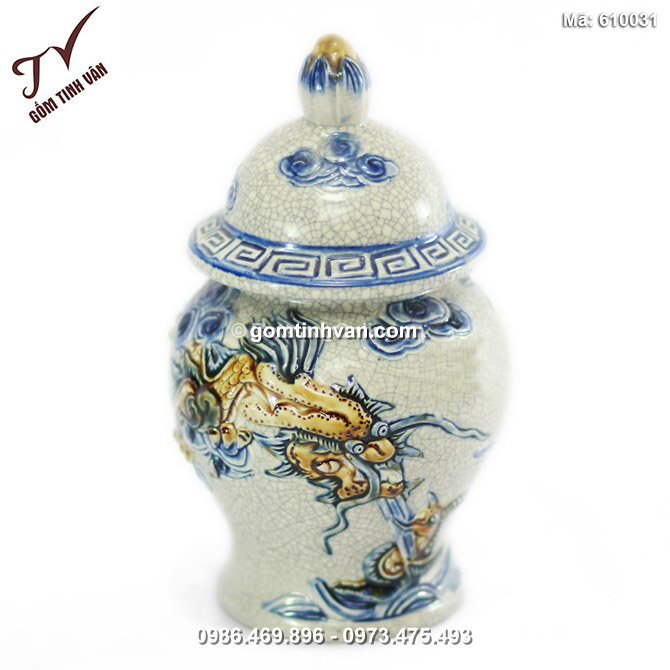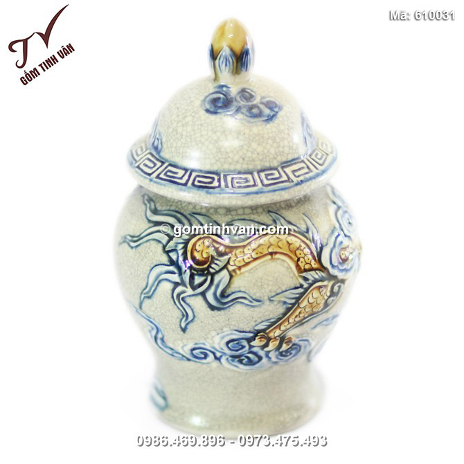 - Tên sản phẩm: Chóe mini Rồng nổi số 4 - men rạn cổ - cao 20 cm - 610031
